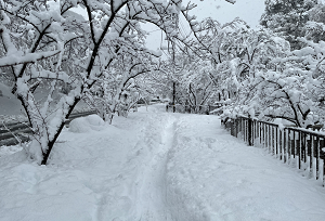 登校坂には雪のトンネルができていました。