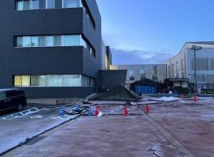 自転車小屋の上には倒木が覆いかぶさり
