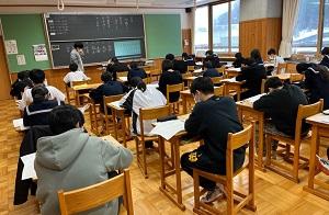 (白嶺中の教室でうける1年生の国語学習)