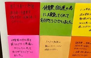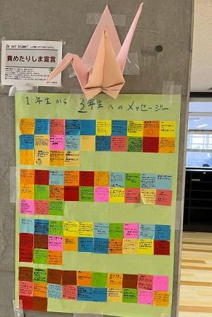 生徒玄関に「感謝のメッセージ」が掲示されました。