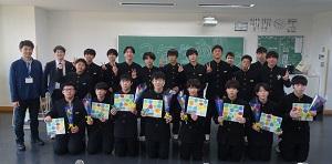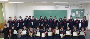 6日昼休み、校内書き初め大会入賞者と