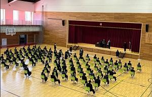 4つの小学校の6年生が輪島中に来て、