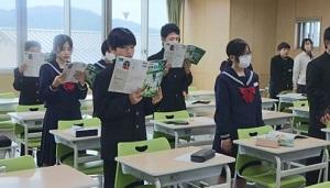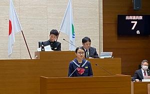 本校3年生から議長1名と議員2名が登壇しました。