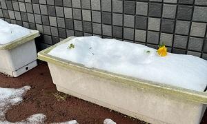 玄関前では数日前に降った雪がとけ残り