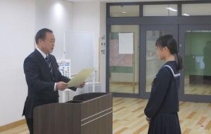 3年生20名を代表して裏さんが受賞しました。