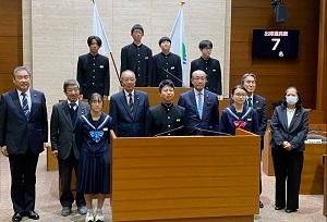 市議会議場にて市政史上初の中学生議会が開かれ