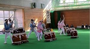 途中、本校吹奏楽部や高洲太鼓、
