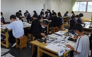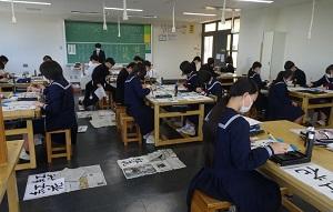 私語無く真剣に毛筆に取り組んでいました。