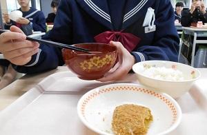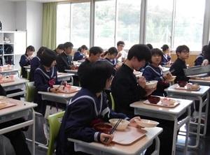 2日、3年1組の給食時間に、
