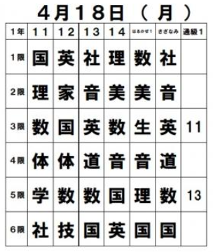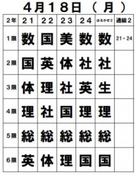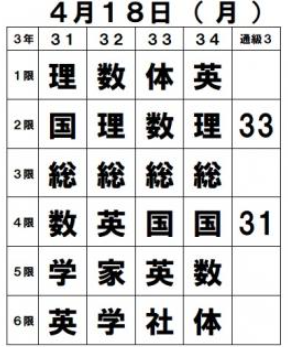 明日(18日・月曜)の時間割を