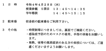 2022年4月28日 16時38分今年度初の授業参観と学年懇談会がありました。