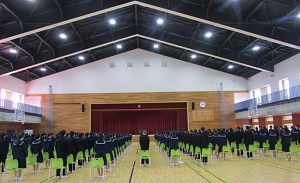 1,2年生が体育館に集い、令和4年度の