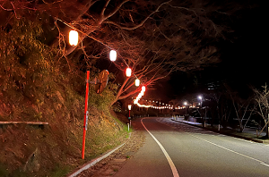 登校坂に花見提灯が設置されました。