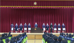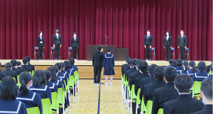 修了式では、本年度の生徒の頑張りを振り返り、