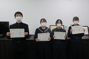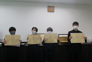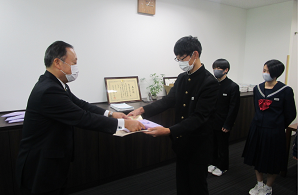 2021年12月16日 14時39分15日、校長室で表彰式を行いました。
