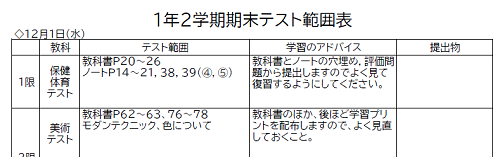 12月1~3日に行われる期末考査の