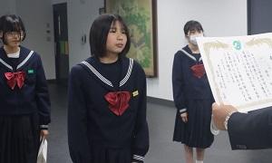 永草校長から学年の代表者に贈られました。