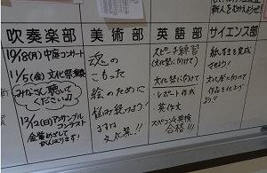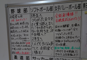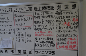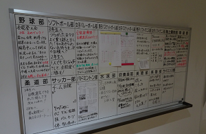 職員室前廊下にある部活動掲示板には、