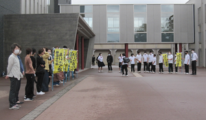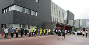 風の強い中、保護者の皆様にも多数参加いただき、