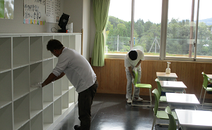 校舎内を抗菌コーティングする作業が
