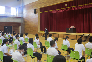その後、中山輪島市教育長から激励の言葉を