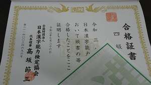 7月2日に実施した漢字検定の結果が届き、