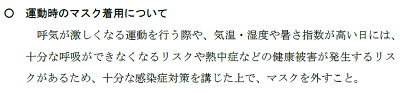 「運動時のマスク着用」について
