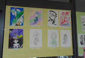 美術部の作品が整然と展示されています。