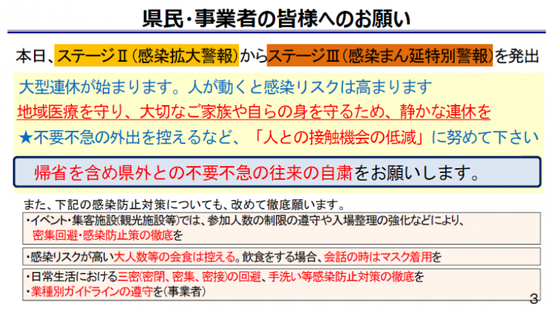 ステージⅢ(感染まん延特別警報)に変更されました。