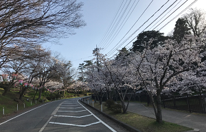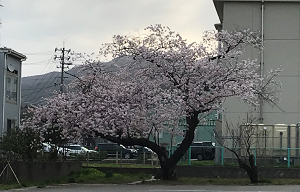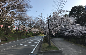 登校坂の桜は勢いよく咲いています。