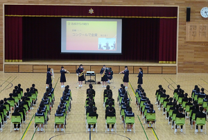 5限に3年生が体育館に集いました。