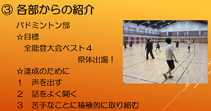 1年生への部活動紹介がありました。
