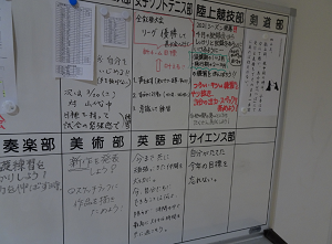職員室前にある部活動掲示板には