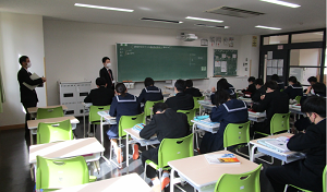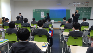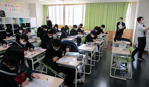 中学の教室で英語授業を体験しました。
