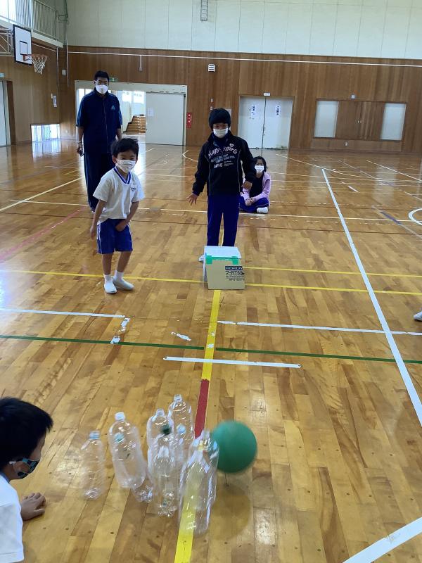 自己紹介,ダンス,ボウリング,プレゼントの他に輪島分校の演奏動画を見ていただく時間もありました。ボウリングはボールを転がすことが苦手な児童でも楽しめるような装置を門前東小学校で用意してくださり,どの児童も楽しむことができました。プレゼントに貰ったメダルは子どもたちが「持って帰る。」「お母さんに見せる。」などと言って,喜んでランドセルに入れて帰りました。