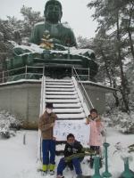 2月22日(火)に中学部3名で校外学習に行ってきました。あいにくの雪模様でしたが、穴水町の長寿大仏やぼらまちやぐらを見学しました。帰校後、ココスのテイクアウトの昼食をみんなで食べ、今年度、中学部3人で最後の校外学習となりました。最後まで約束を守って活動でき、思い出深い校外学習になりました。
