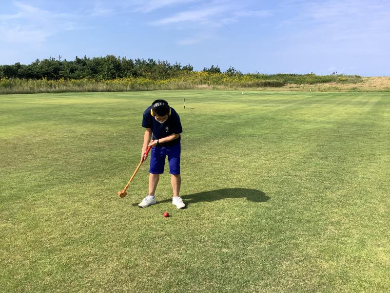 高等部では「スポーツの秋」ということで、10月8日・22日・29日の3日間門前にあるグラウンドゴルフ場へ行ってグラウンドゴルフ大会を開催しました。3日間とも秋晴れの中、16ホールあるコースを3グループに分かれて行いました。生徒達は、スコアを伸ばすためにどうすればよいかを考えながらプレーし、初日より2日目、2日目より3日目とどんどんスコアを伸ばしていきました。体育での活動や門前高校との交流でも行っていたグラウンドゴルフを実際のコースで行うことで、生徒達もモチベーションを高く持ちながら、楽しく向上心を持ってできたと思います!!