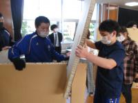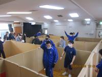 ランチ報告会では、健康診断の結果や、以前アンケート調査したメディア使用に関する実態調査結果などの報告がありました。また、防災について考える日として、災害食の試食や、段ボール間仕切り体験をしました。段ボール間仕切り体験では、高等部の生徒も一緒に参加し、保護者の皆さんと協力して組み立てを行いました。