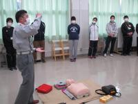 講師として門前分署の方に来ていただき、心臓マッサージやAEDの講習、コロナへの対応、更にはてんかん発作時の対応についても教えていただきました。