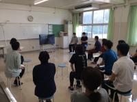 中学部では、コロナウィルス及び熱中症対策として、教室で体育の授業「器械運動」を行っています。