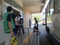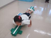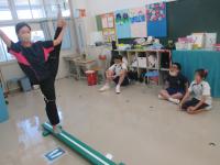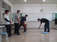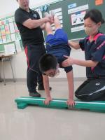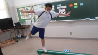 8月27日の体育では平均台運動を行い、ゲストティーチャーとして、体操競技の経験のある、小学部の川下先生に体操の技を披露してもらいました。生徒たちは、実際の演技を間近に見て、驚き!感動!といった様子でした。また、一人一人が、自分もやってみたいという意識が現れたようで、進んで平均台に向かう姿が見られました。