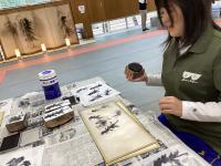 10月16日(木)に、東京国立博物館の方より、「ひと、能登、アート。」訪問授業を行っていただきました。石川県出身の画家・長谷川等伯が描いた作品〈国宝〉松林図屏風の複製を使用し、作品や描かれているものなどについて見て、感じて、楽しむことができました。また、屏風型のワークシートに松の木のスタンプを押して、オリジナル松林図屛風作りも体験しました。