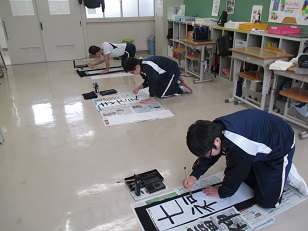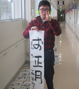 1/8(火)、新年恒例の書き初めに取り組みました。児童・生徒は心を込めて書いたりそれぞれ思い思いの題字を書いたりしました。教室前に掲示してありますので来校の際にはぜひご覧下さい。
