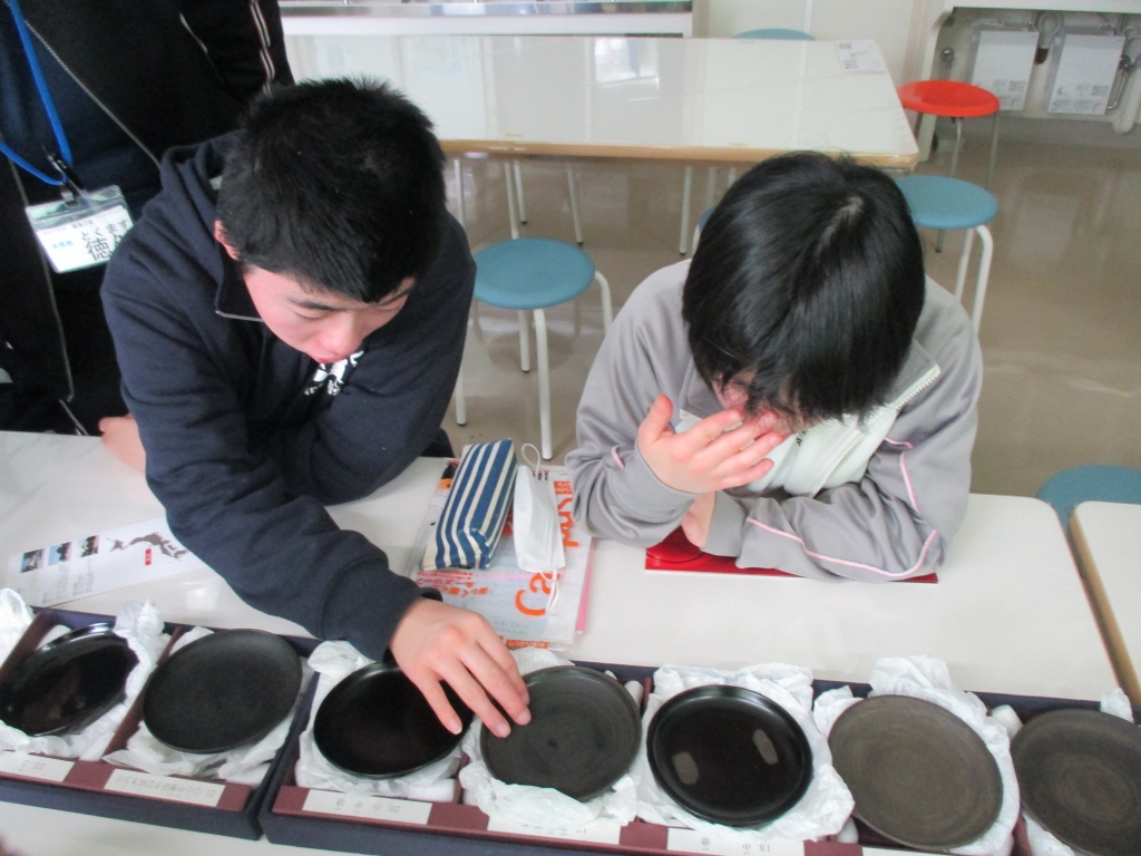 1月9日(水)高等部では、輪島市漆器商工課の方に来ていただき、輪島塗の出前講座を行いました。