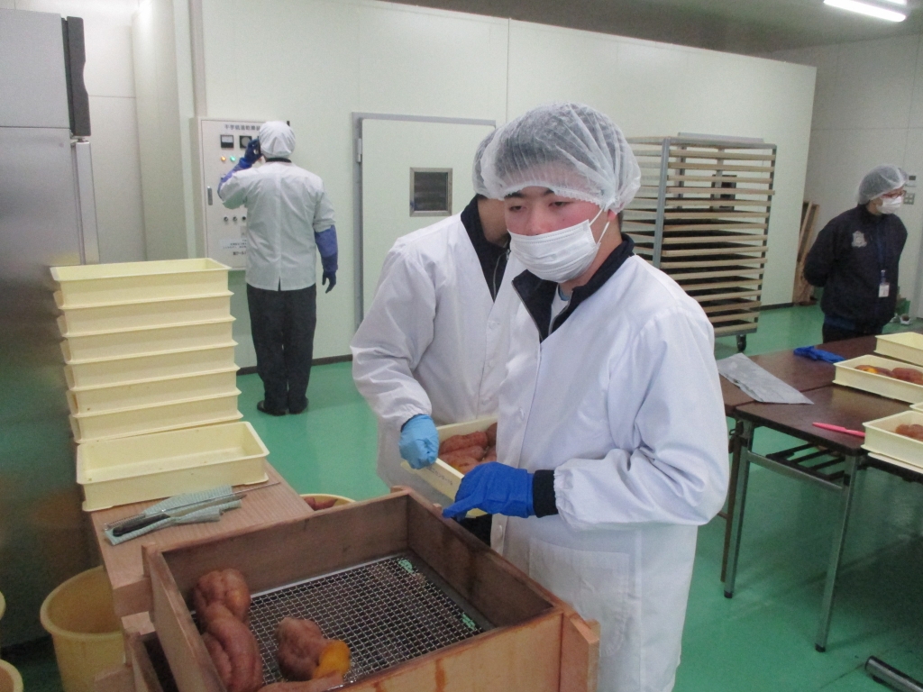 1月9日(水)~11日(金)の3日間、高等部生徒4名がJAおおぞらの農産物加工施設で、干し芋づくりの校外作業学習に行ってきました。