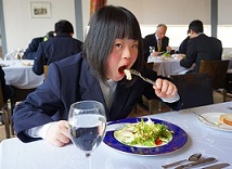 1月18日(金)高等部は、門前町の「VIEW SUNSET]でテーブルマナー(洋食コースランチ)の講習会を行いました。職員さんの指導を受けながら、基本のテーブルマナーを学びました。みんな緊張しましたが、習ったことを実践しながらおいしくいただきました。