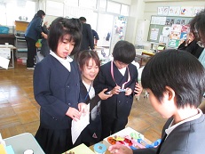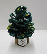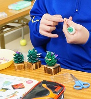 高等部では、「総合的な学習の時間」に松ぼっくりを利用したミニクリスマスツリーを作りました。着色し、細かい飾りを貼り付けて、かわいいキラキラなツリーができました。