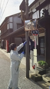 11月29日(木)12月の曇天が来る前にと、高等部の木工班有志は門前商店街のカーブミラー清掃を行いました。この清掃は、校舎が本郷地区にある時から続いています。日頃お世話になっている地域の皆さんへ、自分たちもできることをしよう。意外と汚れているカーブミラー。モップでキュッキュッ!!ピカピカになりました。よく見て安全運転おねがいします。