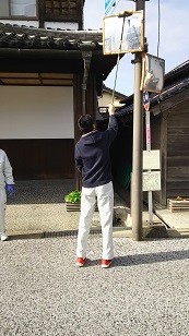 「クリスマスの雰囲気を皆さんにも…」と門前の商店街や交番、図書館、門前支所などにプレゼントしました。素敵なクリスマスを!!