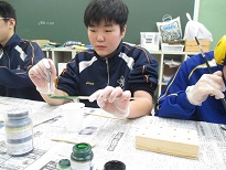 12月6日(木)中学部では、「漆を塗ってみよう」の体験学習がありました。「輪島塗」は本来100以上の工程がありますが、今回はかぶれない塗料を使って、漆塗りの模擬体験でした。慎重に息を殺して塗っている生徒たち。マイスプーンやマイ箸ができました。
